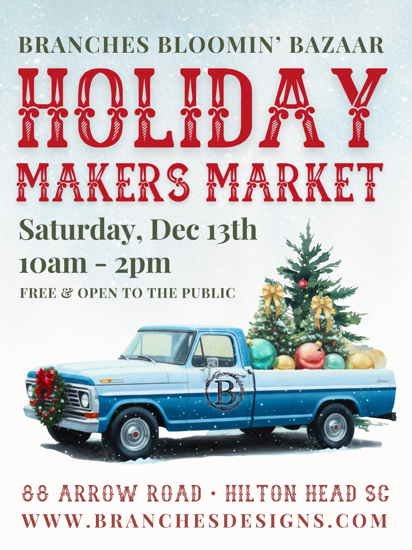 Branches of Hilton Head specializes in permanent (faux) botanicals and florals, custom faux floral and greenery design, home decor, found (salvaged) goods, and antiques. Designers and sisters, Sarah Perry & Lauren McAvoy, took over the business started by their mother and continue creating unique designs and curating fun finds.
